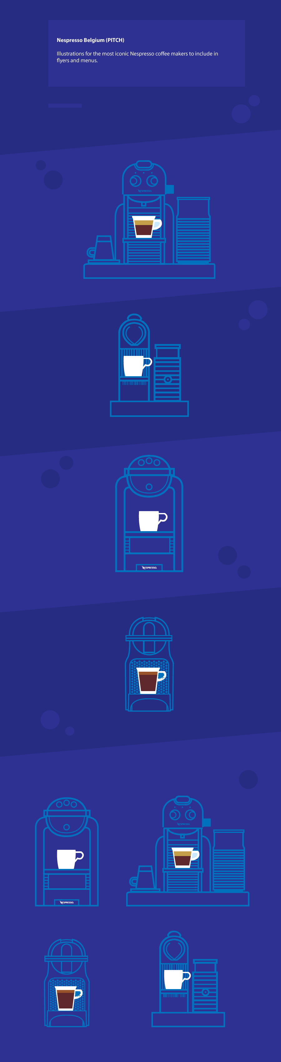 Illustrations for the most iconic Nespresso coffee makers to include in flyers and menus.